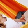 Mit dieser Hängematte scheint die Sonne auch an Regentagen. Wenn Du sie nicht draußen lassen willst, hol sie herein und lade Freunde zu einem Indoor-Schaukelnachmittag ein. Platz genug bietet das reichlich bemessene BAHIA-Modell allemal. Und der Baumwollstoff ist zum Glück recht unempfindlich.