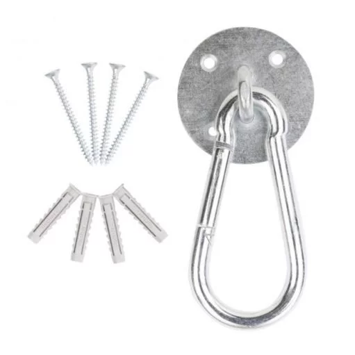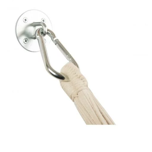 Falls du deine Hängematte am liebsten an ein einer Holzwand oder Betonstange befestigen möchtest, dann bietet sich idealerweise diese Wand-Haken-Befestigung an. Sie wird mit Schrauben und Betondübeln geliefert und funktioniert auch mit fast jedem Bohrer. Falls du vier statt einer Schraube benutzt, dann können die Schrauben ruhig etwas schmaler sein.