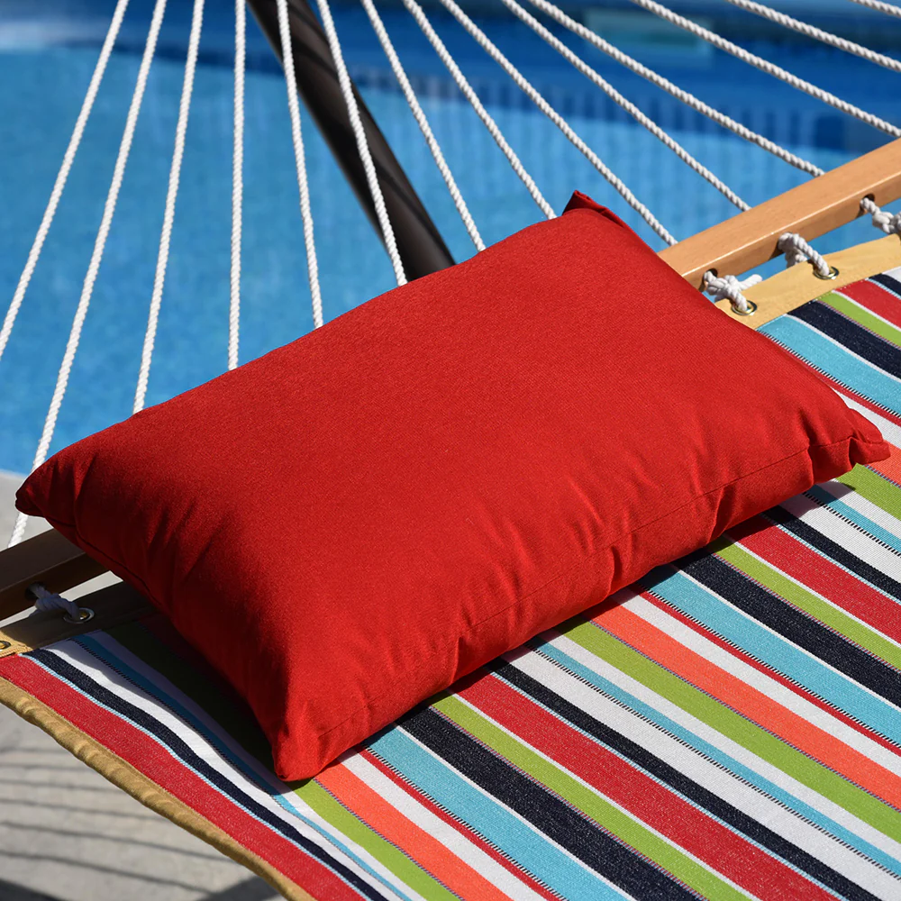 Farbenfroher Komfort für Deine Hängematte! Das Vivere Hängemattenkissen aus gesponnenem Polyester bietet ultimativen Liegekomfort und ist dank seines lichtbeständigen Stoffes besonders langlebig. Perfekt abgestimmt auf Hängematten, sorgt es für ein gemütliches Schlaferlebnis – und mit seinen leuchtenden Farben für einen echten Hingucker in Deinem Outdoor-Paradies!